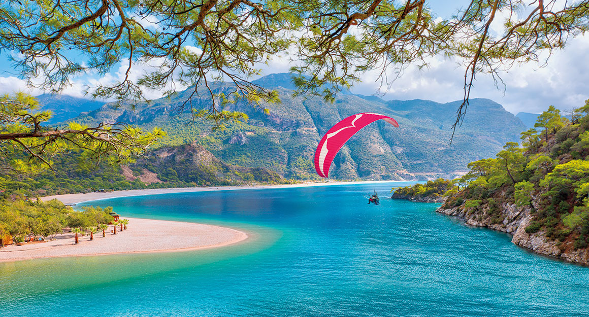 Adventure-seekers can dive between ancient wrecks and reefs near Kaş or take to the skies with a paraglider in Ölüdeniz. Those seeking peace and quiet can drop anchor in Gökkaya Bay, listen to the chirping cicadas, and marvel at the starry sky from the deck.
