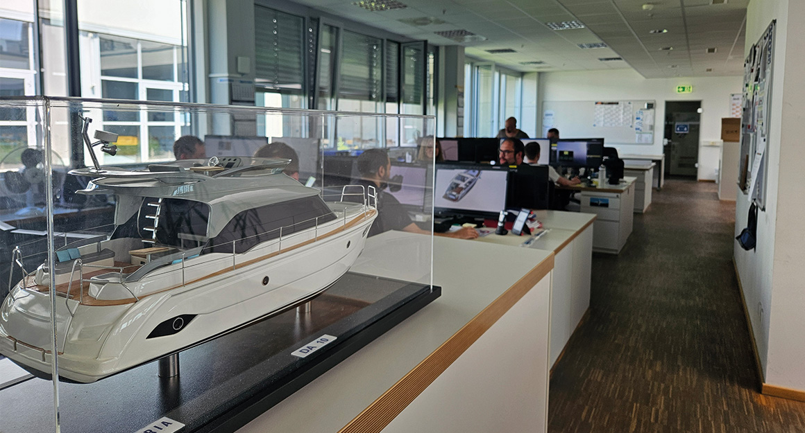 Generally speaking, we are mainly responsible for ensuring that the wishes and requirements from product management can be realised. For example, when we want to launch a new boat on the market. We start by drawing up a kind of specification sheet, which contains all the functional and technical requirements. During product development, we then implement the desired functions and elements in accordance with the technical and legal framework conditions.