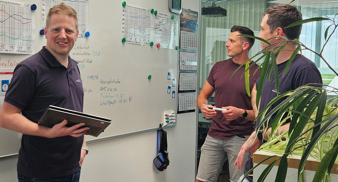 The modern office opposite the cafeteria catches our attention today. Upon entering, there is a bustling silence - typing and clicking. On some screens, we catch a glimpse of complex 3D models and technical drawings. But what exactly are the tasks in product development and what is the department responsible for? Head of department Sebastian Mörchen answers these questions and more in this interview!
