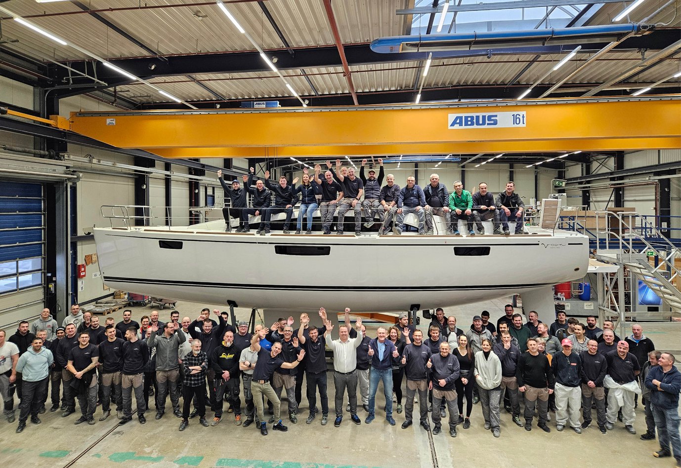 Vergangene Woche wurde die letzte BAVARIA VISION 42 in Giebelstadt fertiggestellt. Am Freitagmorgen versammelte sich ein Teil des BAVARIA YACHTS Teams, um ihr einen gebührenden Abschied zu bereiten. 2012 feierte die Segelyacht auf der damaligen boot Düsseldorf Premiere und etwas mehr als 12 Jahre wurde die knapp 13 Meter lange Yacht in der Werft am Band gefertigt.