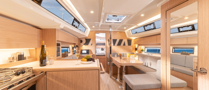So 46 square metres of sail area in the mainsail and 35 square metres in the genoa on the BAVARIA C38 provide that extra bit of power upwind. A Code0 [70 square metres] and the gennaker [130 square metres] also ensure top speeds on half and downwind courses. Easy handling is of course standard at BAVARIA.