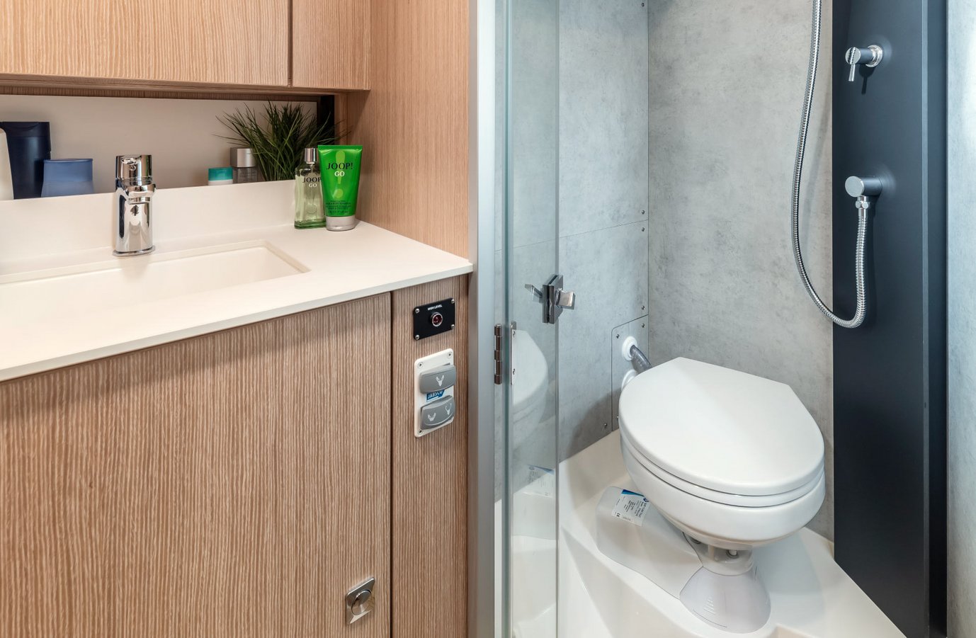 Thanks to the V-shaped bow and the large side windows, the bow cabin doesn’t simply appear spacious; when it comes to headroom and the space on offer, it’s close to unbeatable.