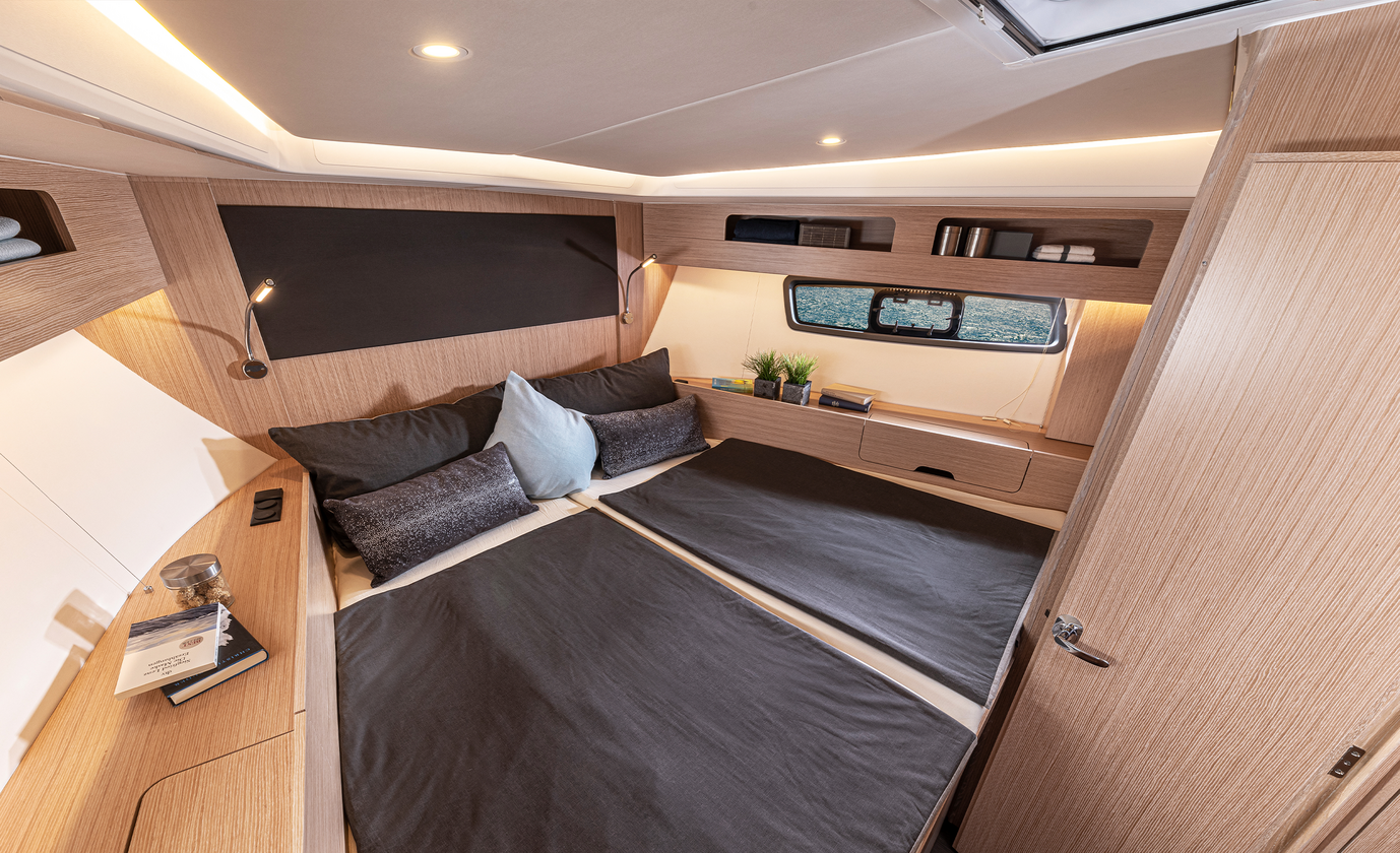 The luxurious midship owner’s cabin on board the BAVARIA SR41.
