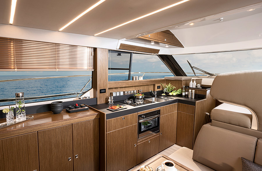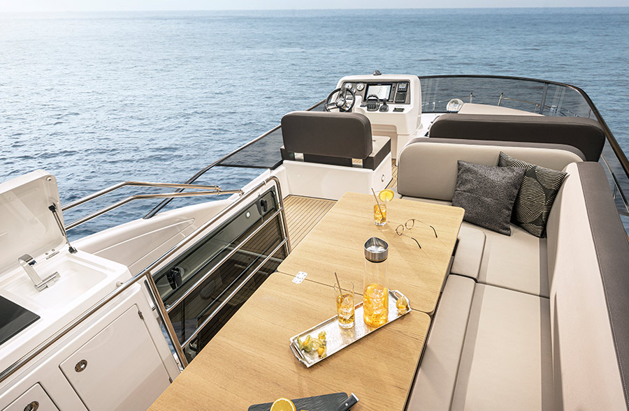 The helm was designed according to the most modern criteria to ensure a perfect overview of all the instruments and controls under all sailing conditions. There is space at the helm for two, because the pleasure of the luxury and comfort aboard a BAVARIA VIRTESS should really be shared.